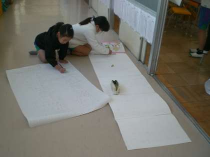 お茶についての疑問を調べる「お茶はかせになろう」の学習が、いよいよまとめに入って来ました。新聞や巻物、1枚の紙になど、いろいろなまとめ方で分かったことを表しています。