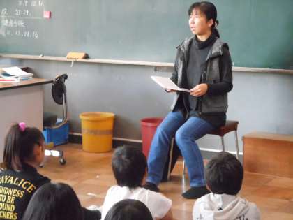 今日は、読み聞かせの方々による「おはなし広場」が5年生の教室で行われました。