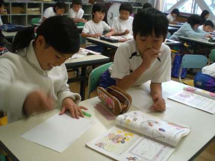 聞こえた音をプリントに図形であらわしてみよう。