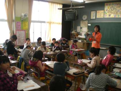 主人公の豆たとおじいさんの様子や気持ちを読み取って、発表しました。