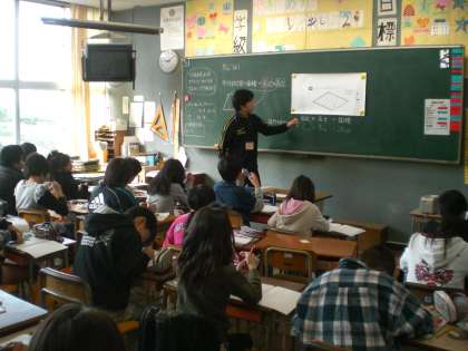 平行四辺形の面積の求め方を図を使って考えました。図の中で、底辺とする辺を変えると、高さとなる場所が変わるなど、底辺と高さの関係がわかりました。