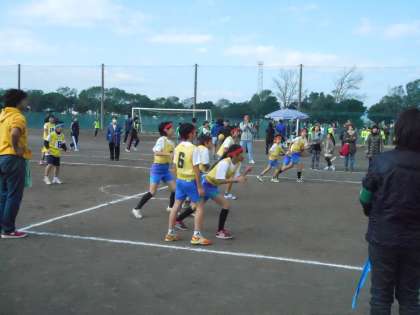 決勝戦進出をかけて『四小ギッズ』と対戦しました。相手チームのターゲットを決めて「い〜ち、に〜い、さ〜ん…」と数えながらボールを回す作戦を切り崩せず、敗れました。