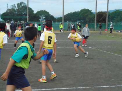 愛鷹小校区代表の『中尾ドラゴンスピリッツ』は、香貫小校区と静浦小校区の代表の3チームで、予選リーグを戦いました。