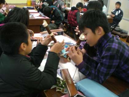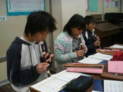 歌のパートの重なりを、リコーダーで吹いています。