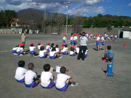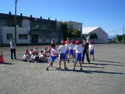 ハンドベースの前に、クラス全員で8の字に挑戦しました。