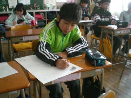 今図工では、版画に取り組んでいます。「思い出の名場面」と題して、子どもたちが思い思いの場面を絵に表しています。完成が楽しみです。