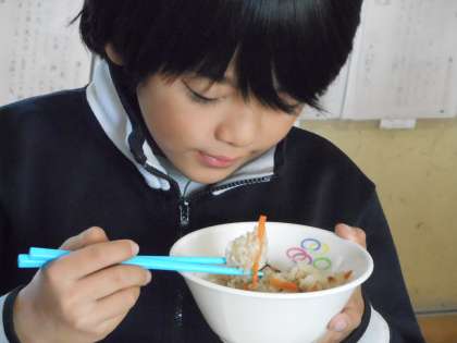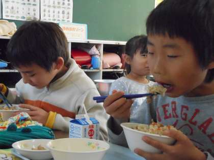 子どもたちは、「奥久慈ごはん」を美味しそうにほおばっていました。