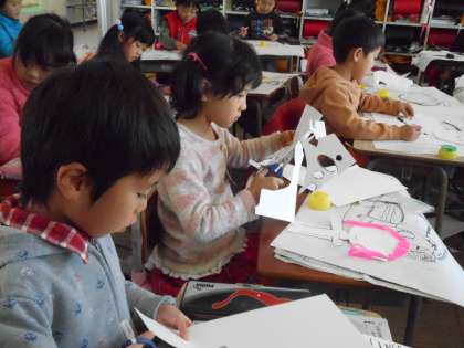 目、鼻、口など、一つ一つのパーツを貼り付けました。