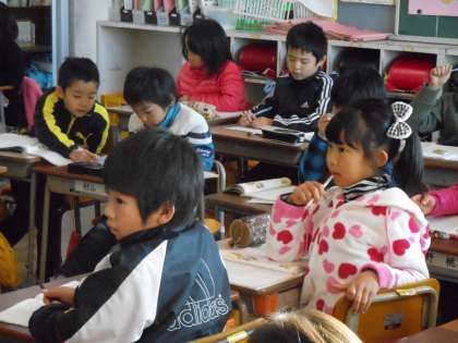 「・・・だろう」「・・・にちがいない」など、いろいろな気持ちを表す文末表現について考え、イラストと結びつけて意味の違いを話し合いました。