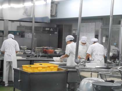 今日も子どもたちの「おいしかったよ」という笑顔の一言を期待して、調理師たちが一所懸命に調理に取り組んでいました。