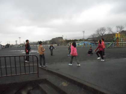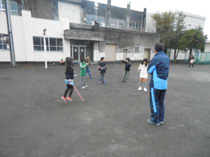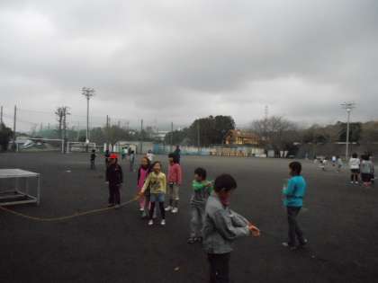 昨日からの雨の影響も少なく、運動場には、縄跳び運動に取り組む子どもたちがたくさんいました。