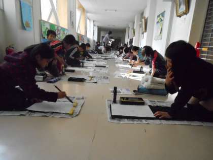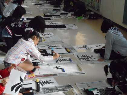 中央廊下に出て、書き初めの練習をしました。