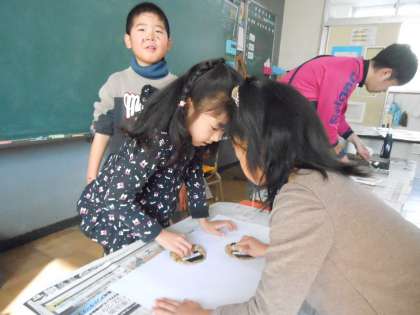2学期から紙版画の版作りをしてきましたが、今日はついに待ちに待った