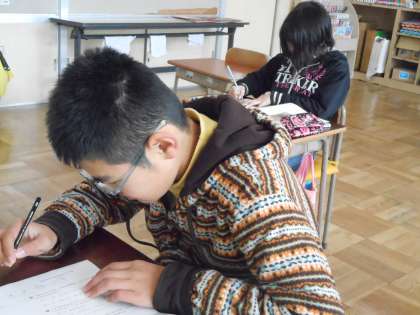 久しぶりのテストの雰囲気に緊張しながらも、真剣に取り組んでいました。