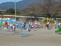 鉄棒でいろいろなぶら下がり方に挑戦していました。風もなく暖かな陽気で気持ちよさそ...