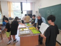 ゲストティーチャーを招いて、版画の学習です。今日はいよいよ刷り始めていました。出...
