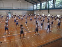体育館でソーラン節の練習をしています。細かなところに気をつけて、少しでもかっこよ...