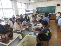 「分数÷分数」の学習です。先生方の研修も兼ねて公開授業として行われました。多くの...
