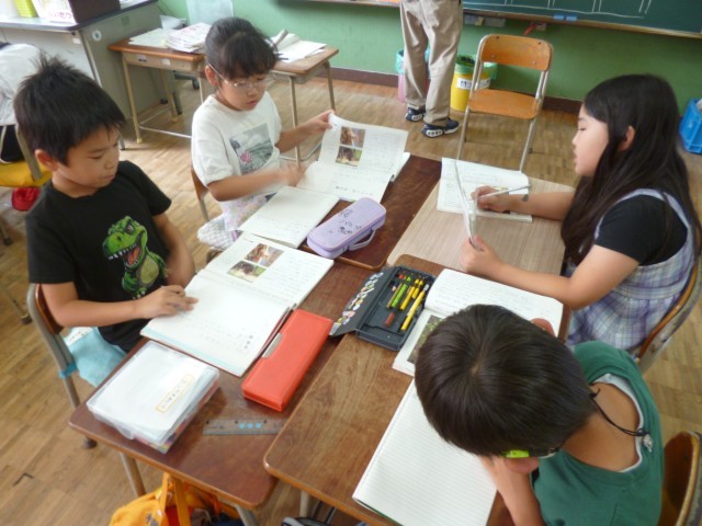 2年生国語「ビーバーの大仕事」の授業の様子です。ビーバーのひみつについて、班ごとに話し合いました。教科書を読んで、文章から秘密が分かるところを探しました。見つけた文章をみんなで出し合い、ノートにまとめました。