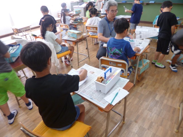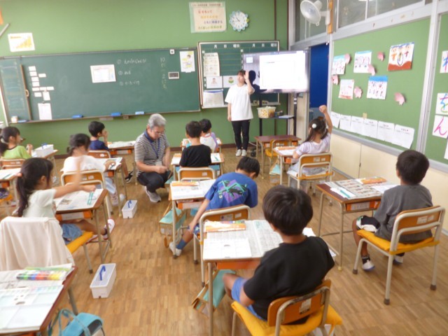1年生図画工作科の授業の様子です。絵の具セットの使い方の練習をしました。机の上に新聞紙を広げて、パレットや筆、ぞうきんを置く位置を確認しました。その後、水入れの置く場所や水の入れる量などを確認しました。これから、絵の具を使って色を塗っていくのが楽しみです。