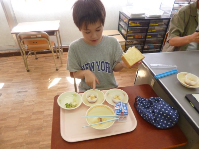 今日の給食は、十五夜こんだてでした。子どもたちは、十五夜デザート(みたらしだんご)をおいしそうに食べていました。 おまけのだんごをじゃんけんで勝ち取った子たちは、うれしそうでした。