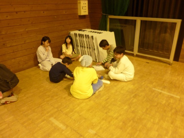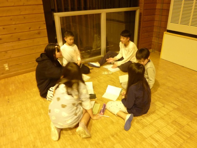 プレイルームで、本日の活動の最後班会議を行いました。1日を振り返ってよかったこと、こうすればもっとよかったことなどを話し合いました。友達のよかったところをたくさん見つけることもできた話し合いでした。