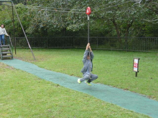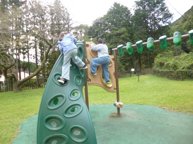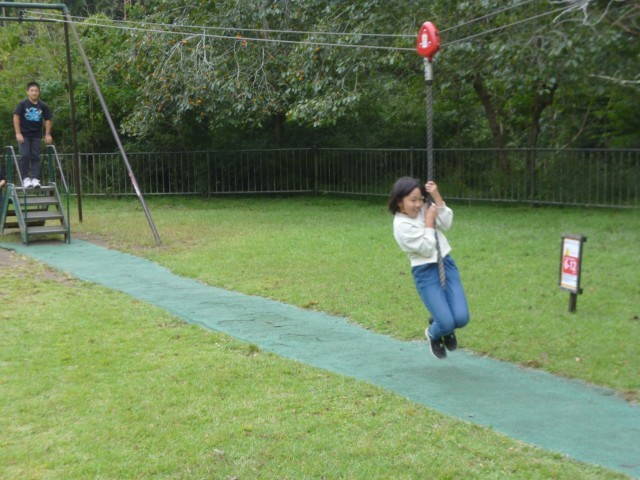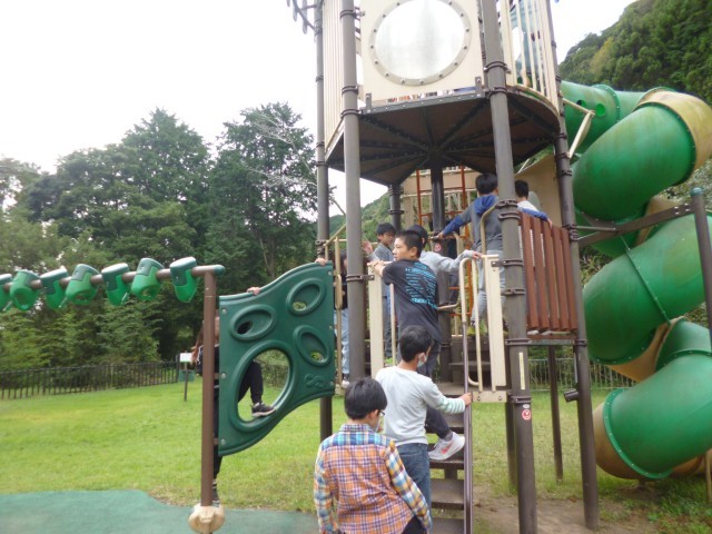 キーホルダー作りが早く終わったので、退所式までの時間がすこしできたので、芝生広場で自由に遊びました。遊具で楽しむ子、友達とおしゃべりを楽しむ子、「どろけい」をやるグループなど、それぞれが好きなことを楽しんでいました。