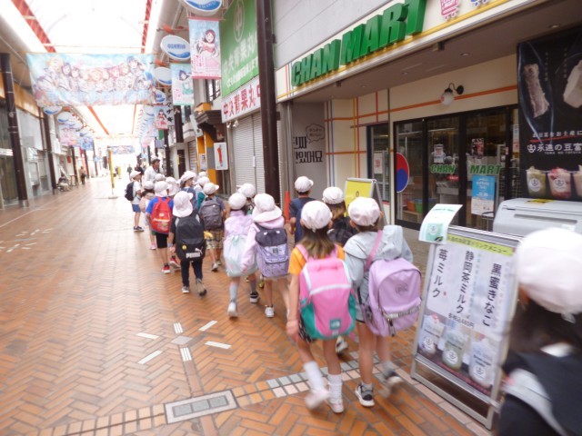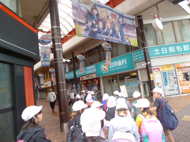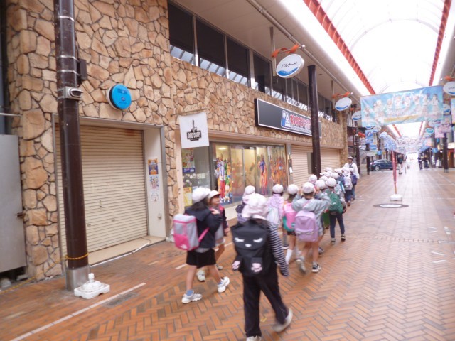 沼津駅でバスを降り後、仲見世商店街を歩きました。商店街のところは、雨が降っても歩くことができるように屋根がついていました。飲食店や洋服屋さん、雑貨屋さんなどいろいろなお店が建ち並んでいることが分かりました。