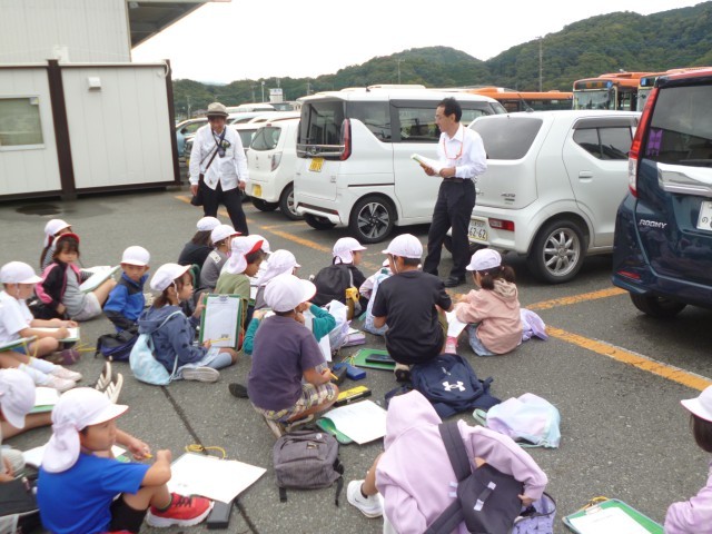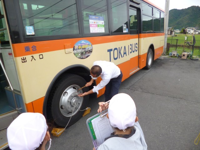 仲見世商店街を散策した後、駅に戻り、大平まで戻りました。大平に戻ってから大平車庫でバスについて説明をしていただきました。また、運転手さんが必ず行うバスの点検や清掃の様子も実際にやっているところを見せてくれました。