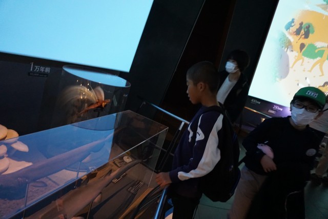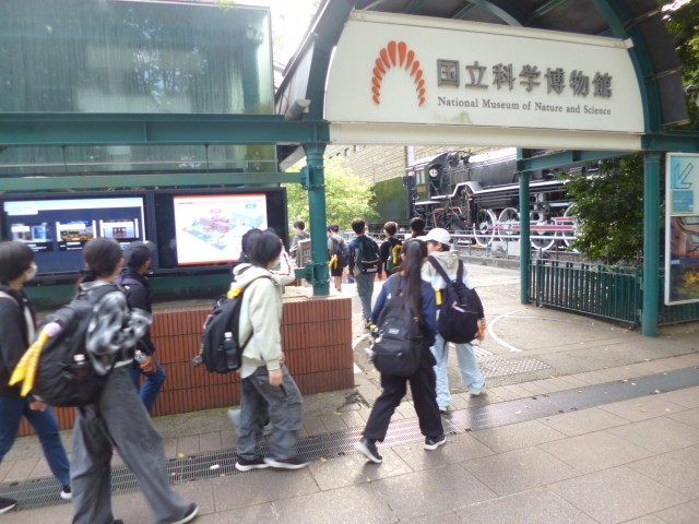 2日目は、上野公園(国立科学博物館、上野動物園)、浅草寺・雷門、東京スカイツリーに行きました。最初の目的地は、国立科学博物館で最初に記念撮影をしました。その後、入館し、班活動に行いました。日本館と地球館があります。日本館は、日本列島の生い立ちや自然、生き物について、地球館は、地球環境の変動と生物の進化で恐竜や自然のしくみなど多様な生き物についてのたくさん展示がありました。