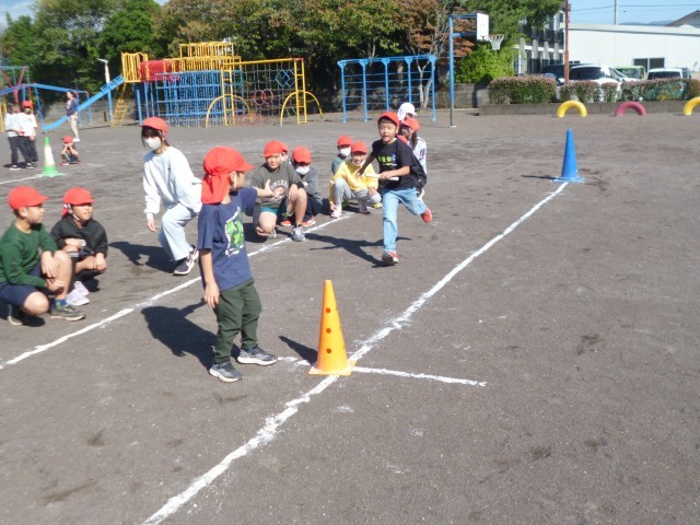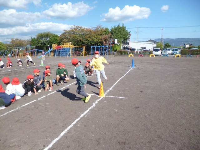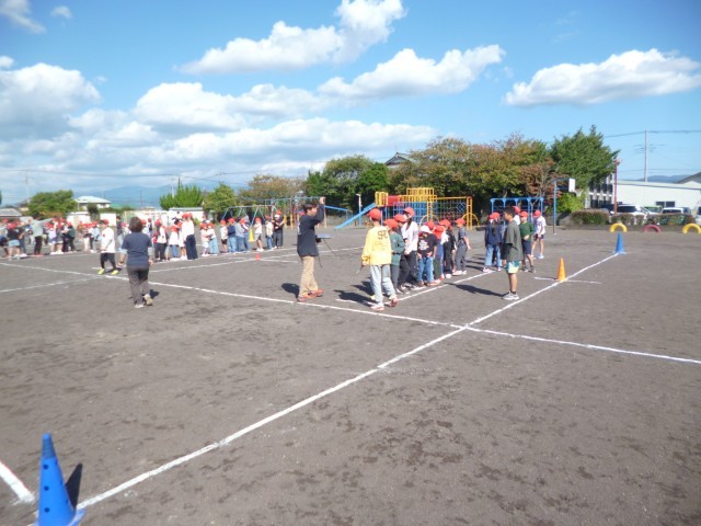 昼休みに体育委員会の企画で、なかよし班別リレー大会を行いました。リレーは、折り返しリレーです。どの班もスタートは5年生、続いて1年生、2年生、3年生、4年生とつないで最後は6年生でした。スタートの合図で、一斉に走り出しました。班ごとに人数が違うので、タイムを人数で割って、平均タイムが速いところが一番となります。どの子も一生懸命に走っていました。なかなかのいい勝負でした。結果は、後日お昼の放送で発表があります。楽しみです。
