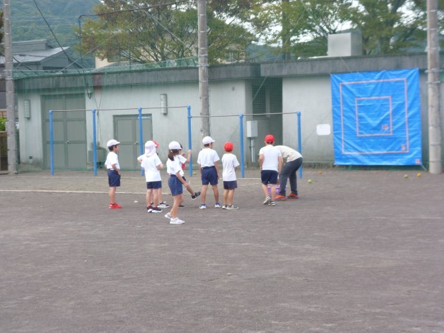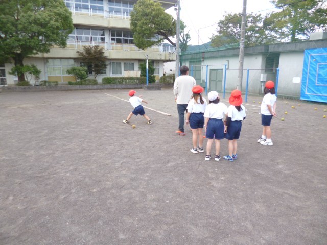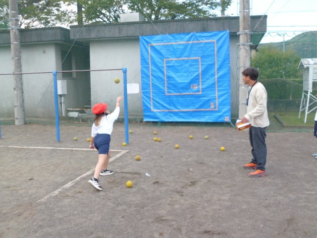 2年生が体育の時間に体力アップコンテストの「みんなで的当て」の種目にチャレンジしました。「みんなで的当て」とは、 1ゲームにつき、1人3回ボールを投げ、まとにあてた3回分のとくてんを合計する種目です。 (ホームページに記録をとうろくすると、自動でへいきん点を計算します) ●まとからのきょりが遠くなるととくてんもアップするので、たくさんれんしゅうすると高得点の獲得もあります。