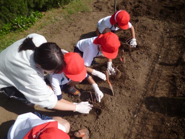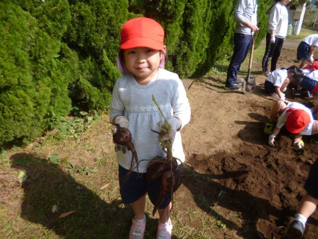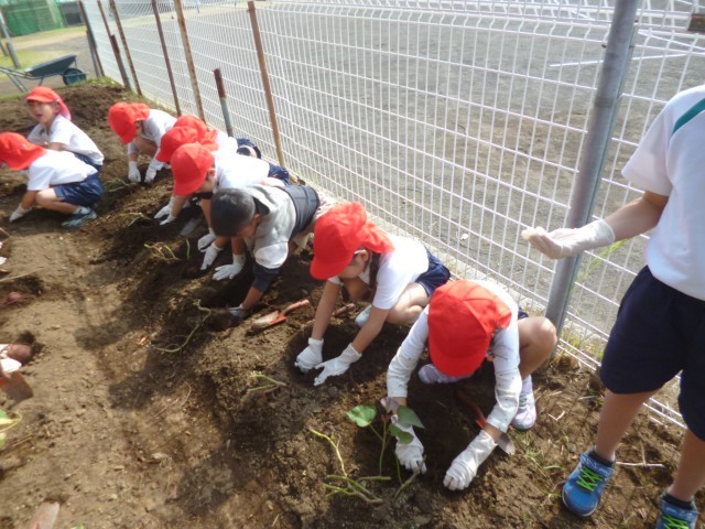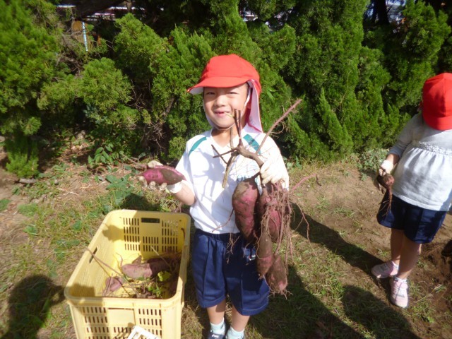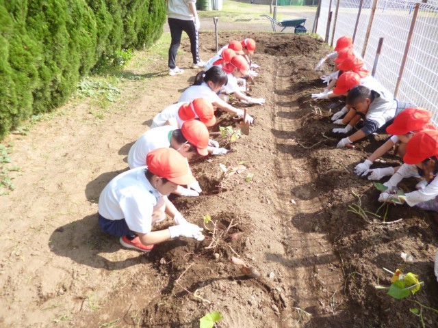 1年生が大平小学校の小さな畑で育てたサツマイモの収穫をしました。さつまいもの品種は、シルクスイートと紅はるかです。みんなで一生懸命に掘ってくれました。大きなサツマイモ「とったよ」と嬉しそうでした。