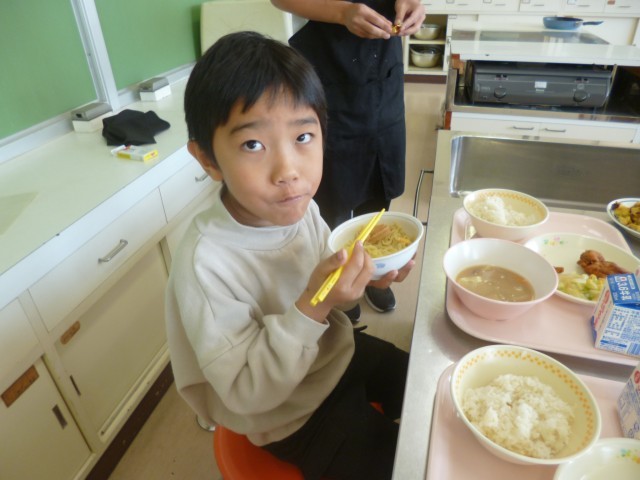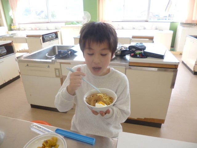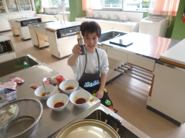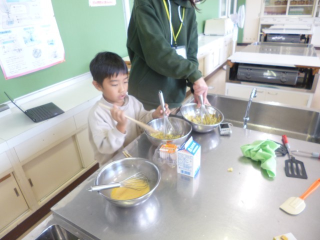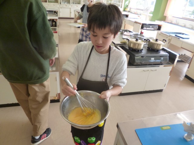 ハロウィンパーティーを行いました。自分たちがパーティーで作りたいものを決めて、「ラーメン」と「スイートポテト」を作りました。ラーメンのスープを作り、その後麺をしっかりとゆでました。スイートポテトは、サツマイモを柔らかくしてからつぶしてフライパンで焼きました。どちらもおいしくできて、満足そうでした。