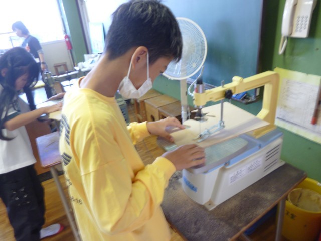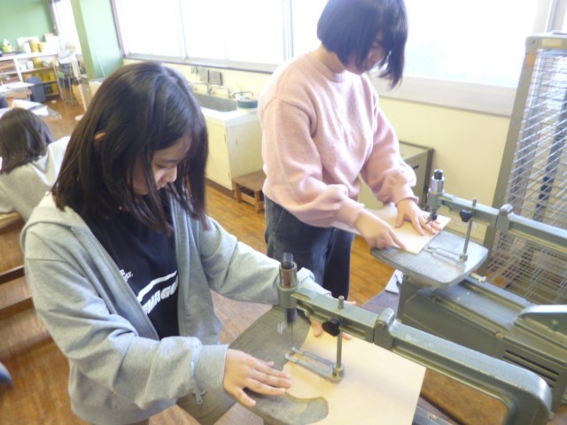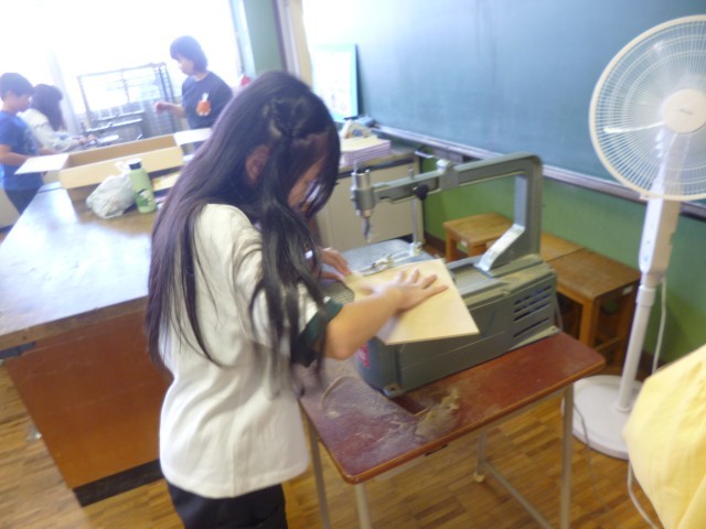 5年生図画工作科の授業の様子です。糸のこの使い方も少しずつ慣れてきました。まっすぐに切ったり、曲がって切ったりと自分の思っているような形に切ることもできています。いろいろな形に切って、これから切れ込みを入れて、組み合わせていくのが楽しみです。