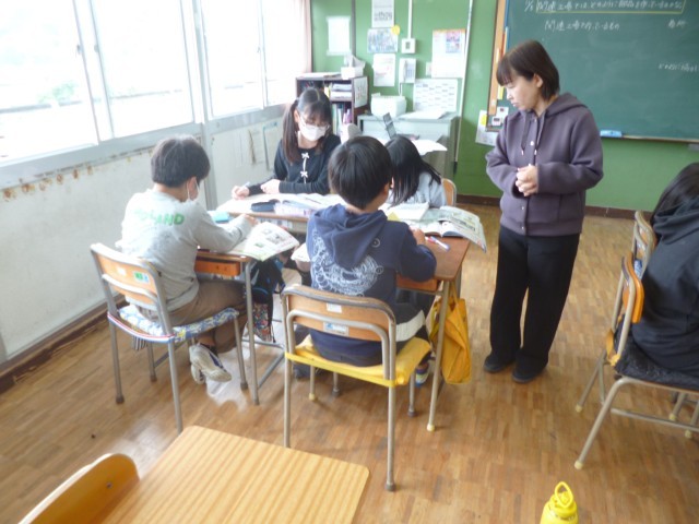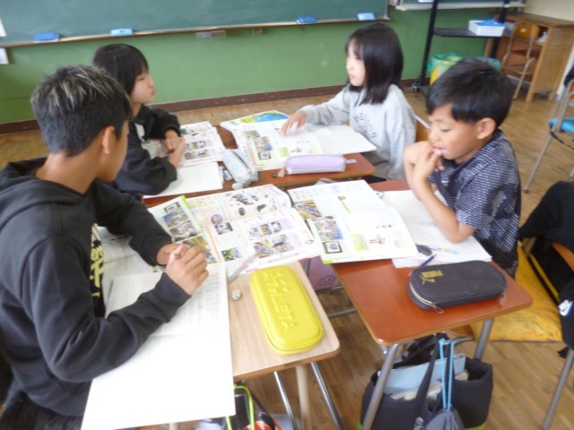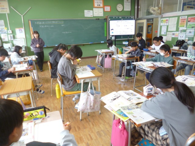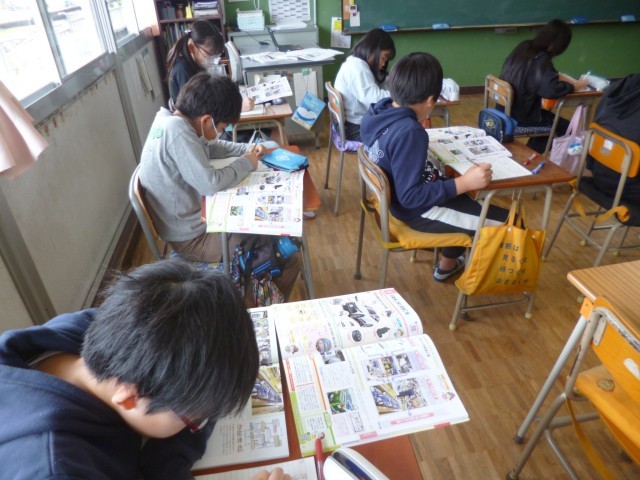 5年生社会科「自動車をつくる工業」の授業の様子です。「自動車に使われている部品はどんなものがあるのか」、「どのようにして作られているのか」について、教科書や資料集を使って調べました。その後、グループごとに自分が調べたことを発表し合いました。