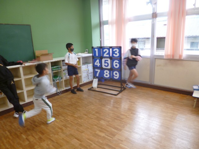 11日の火曜日のロング昼休みにたてわり活動を行いました。今回も6年生が遊びの内容を話し合ってくれました。1班と2班は体育館でドッジボールの対戦をしました。3班は、ストラックアウトと割り箸鉄砲を使った的当て、4班は、長縄を行いました。5班は、運動場でドッジボール。6班は、教室で座布団取りゲームと震源地ゲームを行いました。どの班もみんなで楽しむことができました。