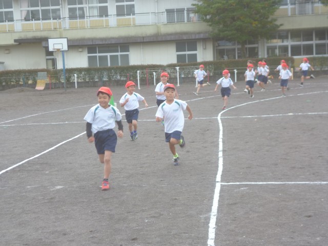 かけ足運動も2週目となり、子どもたちも自分のペースがだんだんと分かってきました。スタートの合図からどんどんと走っていく子、最初はゆっくりと走りながら、少しずつペースを上げていく子など、自分のペースに合わせて、目標を立てながら頑張っています。