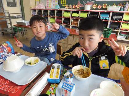 「いただきます。」の挨拶も元気にできました。教室中が、「おいしい!」「もっと食べたい。」と、笑顔でいっぱいになりました。
