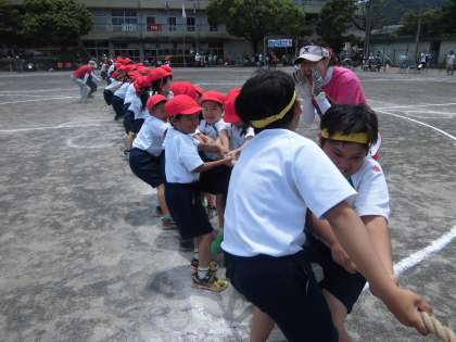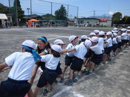 午後の部は、綱引きから始まりました。一勝一敗、どちらも負けられない3回戦目。勝利を手にしたのは、赤組でした。