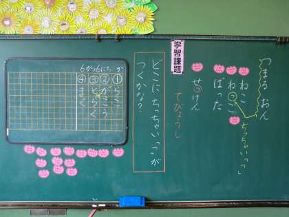子どもたちは、手拍子を打ちながら、どこに小さい「つ」が入るのか、