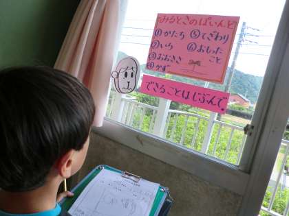 また、カードを書くときには、ベランダに続く窓に貼ってある、