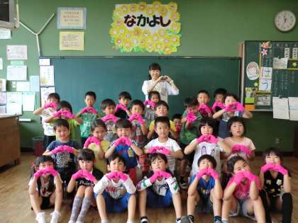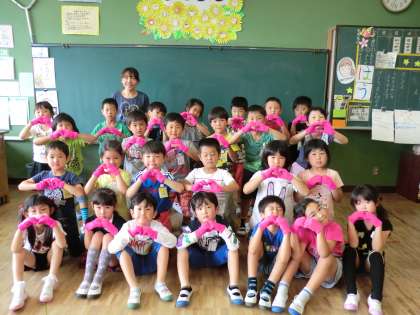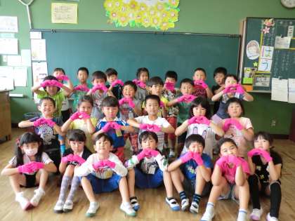 今日は、みんなでダンスに使った手袋をして、写真を撮りました。