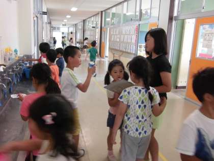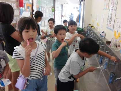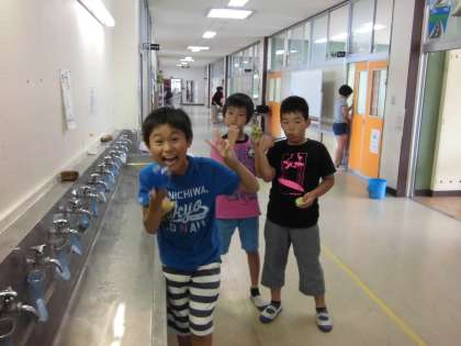 今日は保健委員会がみんなの歯みがきの様子を見回りました。
