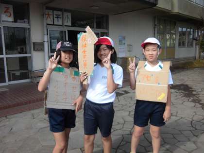 保健委員会は、熱中症を予防するぞ!と朝から呼びかけをがんばっています。