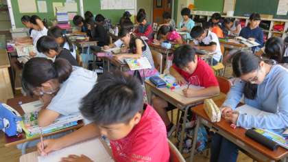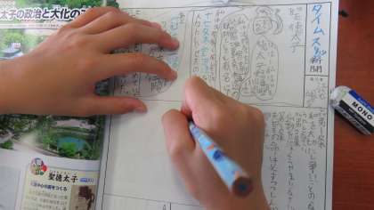 「天皇中心の国づくり」「貴族のくらし」のまとめで、新聞作りをしました。2回目の新聞作りとあって、みんなスラスラ書き始めました。
