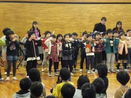 アンコールでは、大平小学校のテーマソングともいうべき、ゆずの「スマイル」をパラディアムの皆さんに伴奏をしていただいて、みんな歌いました。「なみだをふいて〜空を見上げて〜」と美しい歌声が体育館に響きみんなの心が一つになりました。そして最後に恋ダンスを1年生2年生をお手本にして踊りました。感想発表でも自分の思いを伝えることができ素晴らしい音楽鑑賞教室になりました。