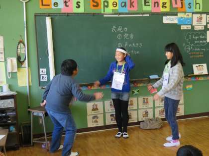 3年生から「声を変えていてすごい」「動きがおじいさんのようだった」「英語で文を話せるのは、さすが6年生だと思った」などと言ってもらいました。