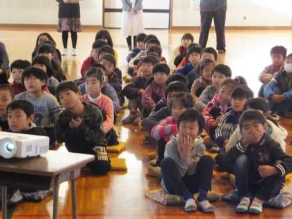 校長先生からは、1年生から順番に2学期の活躍や輝いていたところをお話ししていただきました。写真に登場する自分や友達の姿を見て、どの子もにこにことしていました。そして、冬休みに、「自分のまわり」「自分の過ごす場所」「心の中」の「3つの大そうじをしてください」というお話が最後にありました。