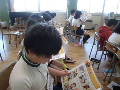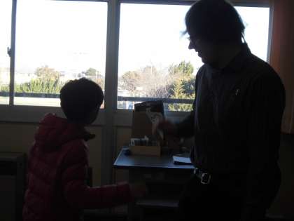 その後,新しい単語をいくつか練習しました。こどもたちはローマ字練習で文字が読めるようになったので,「○○かな?」と予想しながら,クリス先生の発音を聞いていました。そして,『冬休みはどこにいきましたか』『〜へ行きました』の英語でのコミュニケーションを楽しみました。